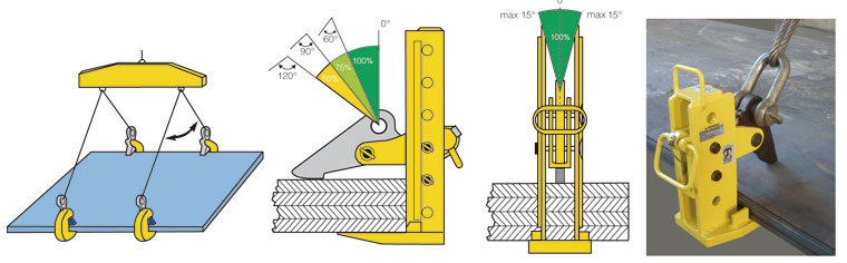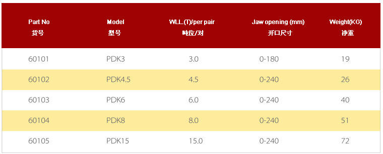 .額定載荷是指吊鉗成對使用、吊點夾具為60度時允許起吊的最大重量,吊裝作業中兩只或4只配套成組使用